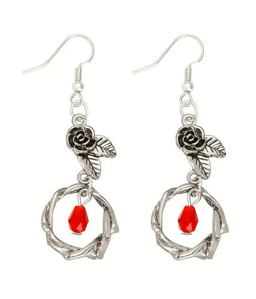 ROSE AND THORN VINE DROP EARRING : Size- 0.7 X 2.36 INCHES : Color- SLRD